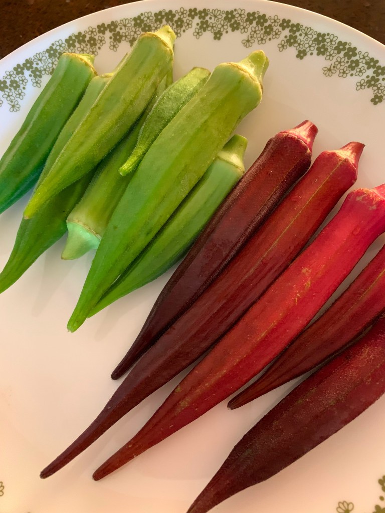 Okra is producing, but not as heavy as we’d like. Two varieties we are harvesting now are the traditional Clemson Spineless and Red Burgundy. This is our first year of okra production and from 7-8 plants we harvest 3-4 okra a day. In a week we have enough for a meal.