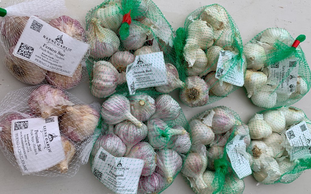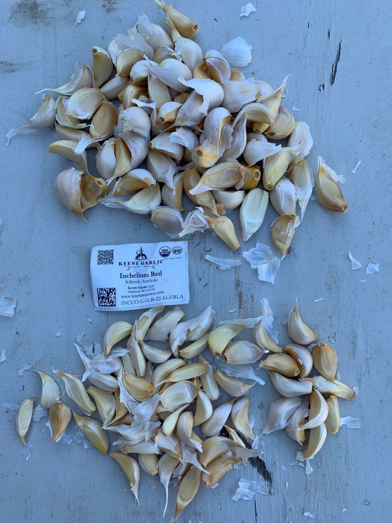 One of our sources of garlic growing information was from Keene Garlic in Wisconsin. They have many varieties of seed garlic as well as great growing information. Based on their recommendations, we selected varieties expected to do well in our climate, two softneck and six hardneck varieties. Garlic for seed is typically shipped in October, but we placed orders months before to assure we’d get the varieties we wanted.