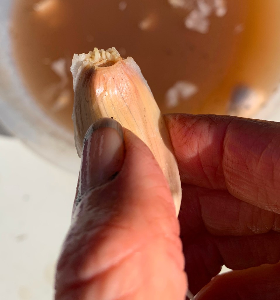After 24 hours of soaking, many of the cloves were already growing roots! They were ready to grow.