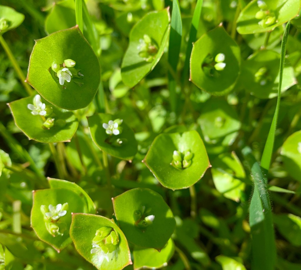 It is in the Montiaceae family, which is a relatively small plant family with no well known relatives. However, in the past it had been considered part of the Portulacaceae or purslane family and does have some similarity to purslane, another plant commonly foraged in the wild (or considered a garden weed). Purslane comes up all over in our garden, but likes the hot weather, so we won’t see any for a couple months at least. In fact purslane has a special ability to “hold its breath” in hot weather to avoid losing moisture. Something for a later article!