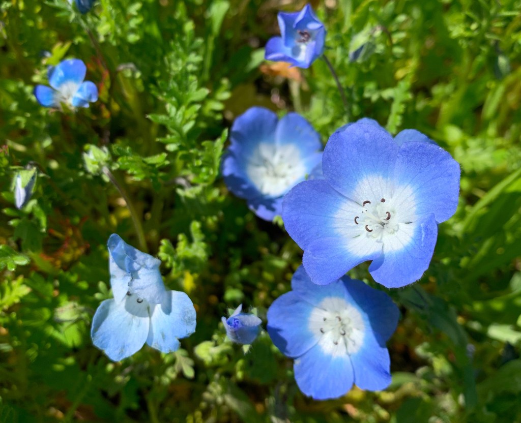 The baby blue eyes are one variety of wildflowers we have in our collection. They just started blooming as well. Lots of other wildflowers are on their way, but not quite blooming yet. Next month should bring a full display of color in the garden.