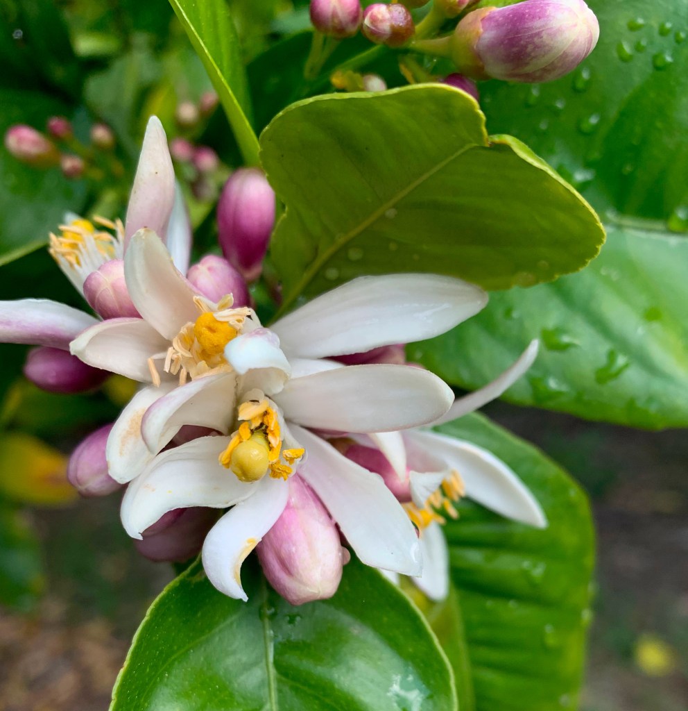Here’s a short video tour of the garden with the sights and sounds, just missing the aroma of the citrus!