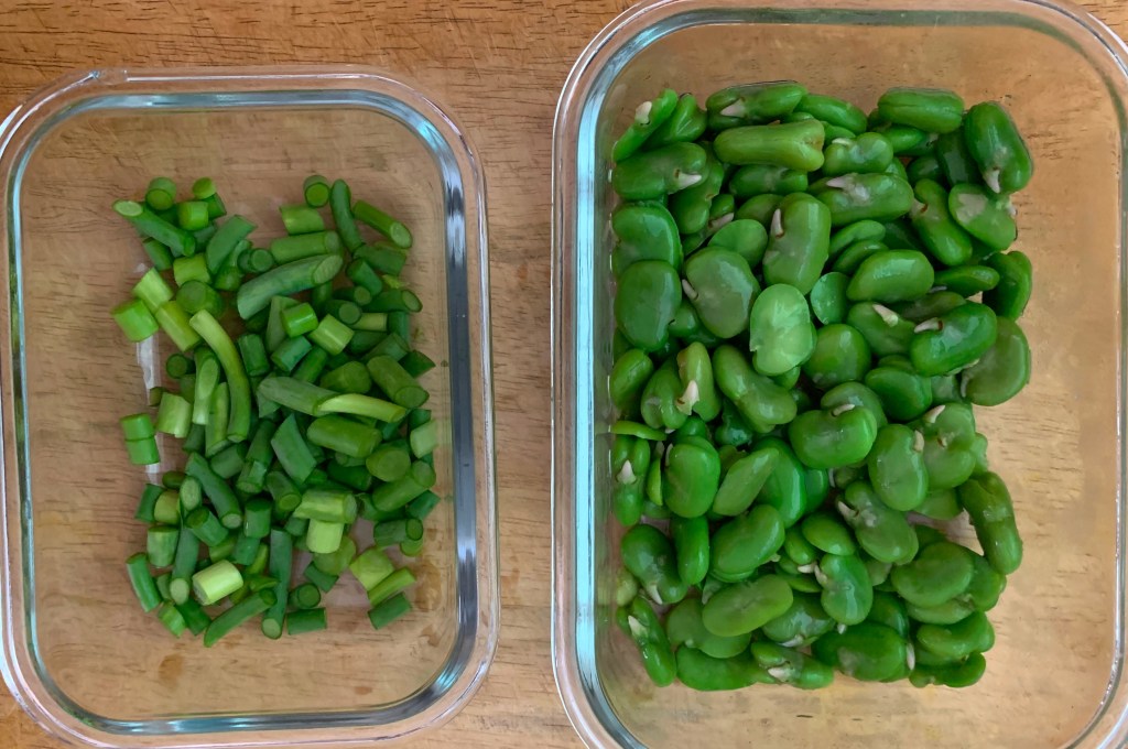 The beans take a bit of effort to get ready, since they need to be shelled from their pods, then the tough skins of the beans need to be removed. The result is nice tender tasty beans.