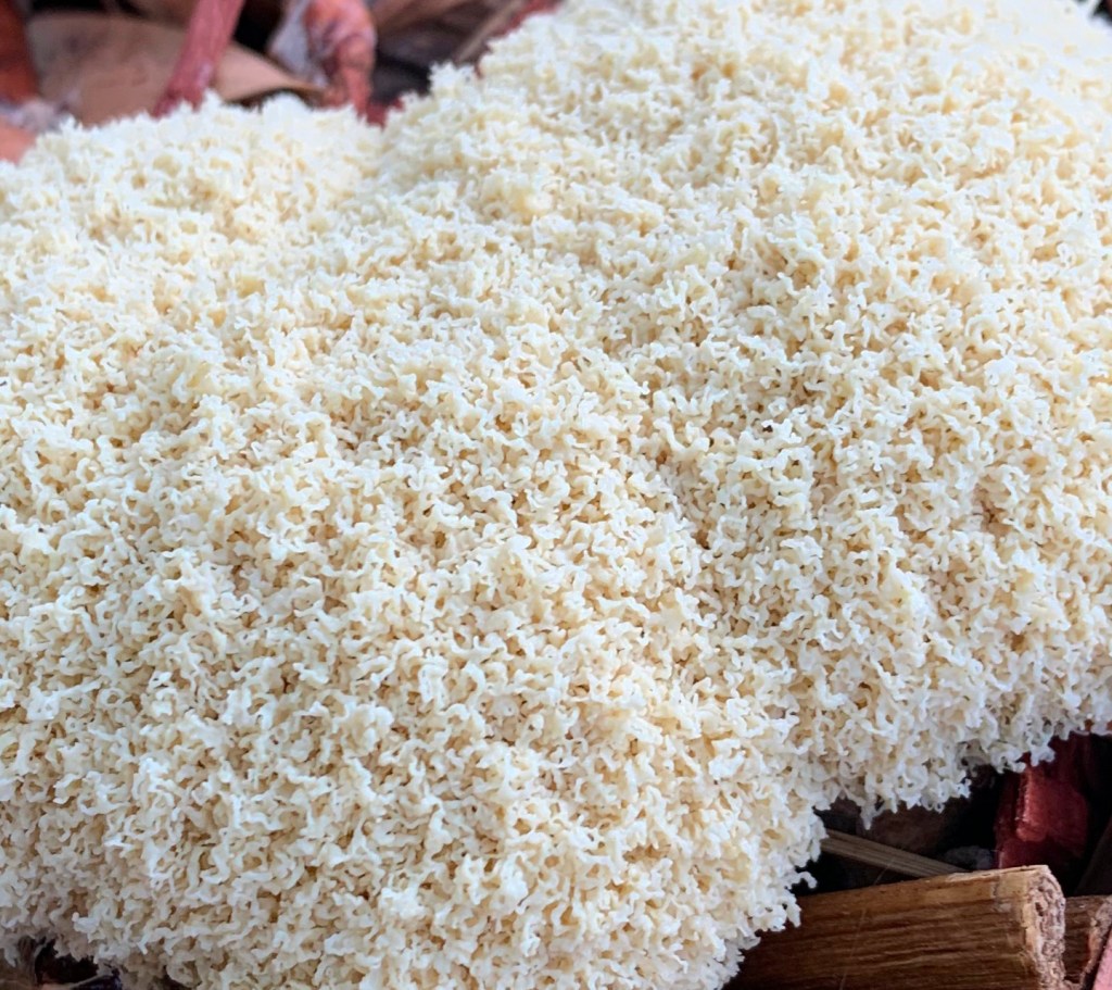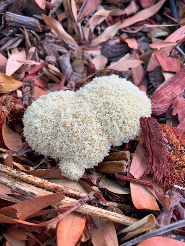No, it is not one of our new recipes! Looking around the garden just a bit after 7 am in the morning, there was this white blob sitting on the mulch under the fig tree. First thought is maybe it is an unusual type of mushroom. However the surface texture is quite strange. Now some fungi can be really unique, so this needed some investigation.