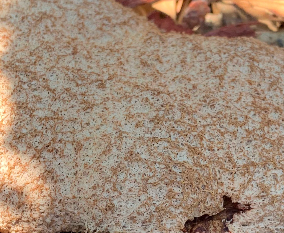 Our garden specimen is just moving into this stage preparing to form sporangia. Here is a closer view. You can see the very intricate structure on the surface with lots of little branches and bumps that will later form the sporangia.