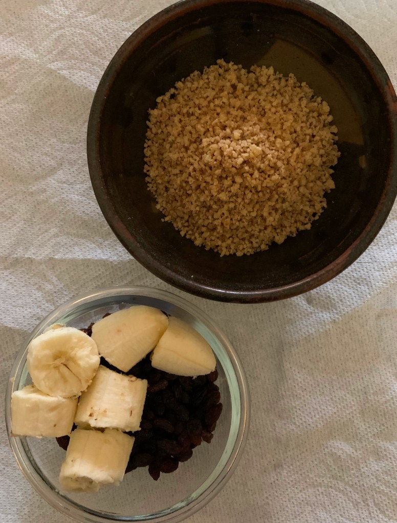 Peel mandarins, cut in half to remove any seeds then place in food processor. Add applesauce, raisins, banana to food processor and pulse a few times to liquify the ingredients.