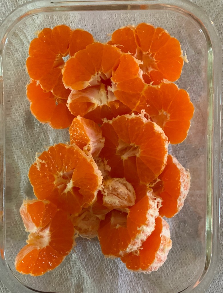 - 6-8 Satsuma mandarin oranges, peeled, cut in half and any seeds removed