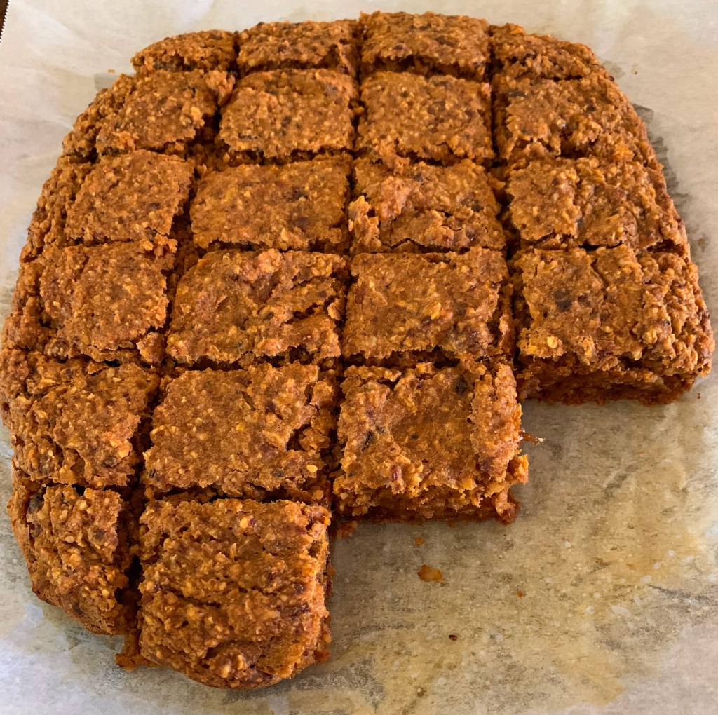 We cut into 24 bars that are a great size for snacking. Each one is packed with nutrition and fiber, so one or two is a great serving size.